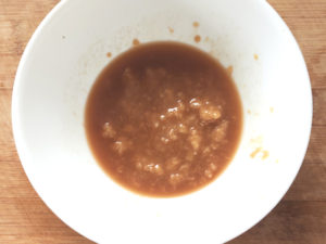 ⑥容器に、砂糖、酒、醤油、味噌を加えて混ぜ、合わせ調味料を作ります。