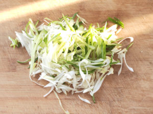 キムチとネギと野菜のみで、ちょっと和風のパスタにしてみました。キムチの味があるので、ほんの少し砂糖を加えるだけで美味しくなります。ぜひキムチの消費にどうぞ。
