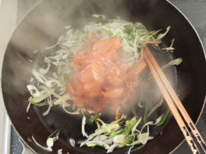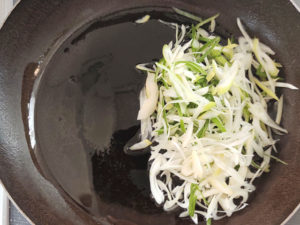 ③フライパンに薄く油(分量外)を引き、ねぎをさっと強火で炒めます。