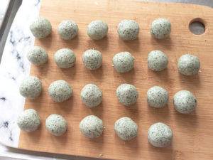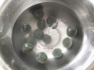⑦ボールに氷水を用意し、ゆでた団子を入れ、5分ほど放置して冷ましましょう。