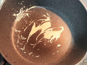![]() ①フライパンにマヨネーズ大1を入れ、弱火で炒めて軽く溶かして油の代わりにします。 |