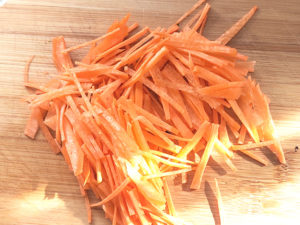 ③人参は皮をむき、千切りにします。