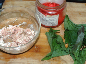 ![]() ③ツナは缶汁を切り、マヨネーズを混ぜておきます。 ④シソは綺麗に洗い、紅生姜も用意しておきましょう。 |