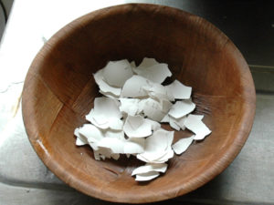 ②卵の殻を薄皮もむいて、砕いたものを1時間天日に干しましょう。