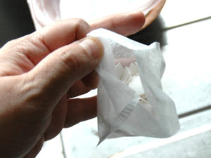 ⑤卵の殻は、お茶用のパックに入れて蓋をします。