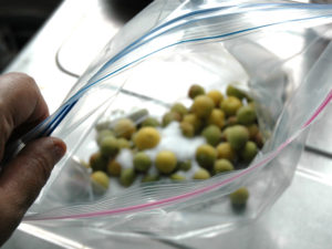 ⑥ジップロックの袋に、梅→塩→梅→卵の殻→塩→梅の順に入れましょう。