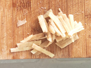 ![]() ③生姜、青じそは千切りにし、煎茶は薄めに入れて冷ましておきます。 (煎茶は多めに作っておきます。) |