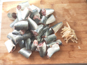 ![]() ①鰯は鱗を丁寧に取り、頭を落とし、2.5cm幅の筒切りにします。 ②切り口から内臓を箸で取り出し、良く塩水で洗いましょう。 (下処理をしないと、臭みや苦味が出ます。) |