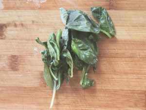 ![]() 4:バジルは茎から葉を1枚ずつ外しておきます。 |