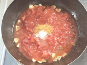 トマト缶はできればカットタイプを使うと、崩す作業も要らず簡単です。