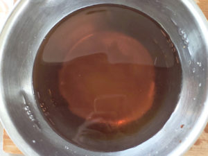 ![]() 5:ボールに水、酒、砂糖、みりん、醤油を入れて混ぜて調味液を作ります。 |