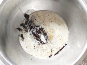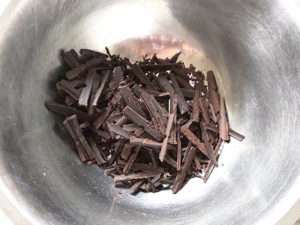 ![]() 1:チョコは細かく均一に刻み、ボールに入れます。 |