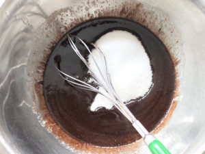 ![]() 3:チョコが温かいうちに、グラニュー糖を加え、ザラザラ感がなくなればOK。 |