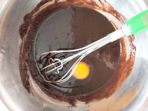 ![]() 4:チョコのボールに卵を1個ずつ割り入れ、その都度よく混ぜましょう。 |
