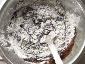 ![]() 6:バナナもボールに加え、薄力粉とココアパウダー、ベーキングパウダーを合わせて、バナナにかぶせるようにしてふるい入れ、ゴムベラで練らないように混ぜましょう。 |