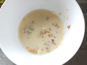 ![]() 5:容器に味噌とマヨネーズ、みりんを入れてよく混ぜ、合わせ調味料を作ります。 |