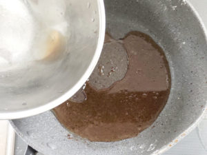 ![]() 12:鶏肉を取り出したら、フライパンに残った油を拭き取り、南蛮ソースを火にかけ、砂糖などが溶けたらOK。 |
