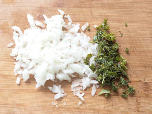 ![]() 5:★タルタルソースの玉ねぎは皮をむいてみじん切りに、パセリもみじん切りにします。 |