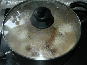 7:沸騰したら、蓋をして、10分ほど煮込みます。