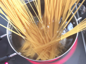 ![]() 2:鍋にたっぷりのお湯を沸かし、パスタをパッケージの時間通りにゆでましょう。 |