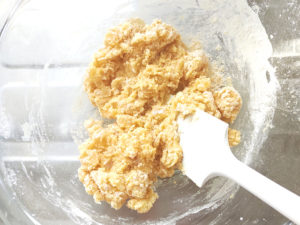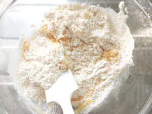 5:ドライパインをボールに加えて、ゴムベラでさっと混ぜます。