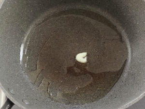 ![]() 4:レンジでじゃがいもを温めている間に、フライパンに薄く油(分量外)をひき、弱火でにんにくを炒めて香りを出しましょう。 |