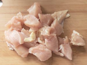 ![]() 1:鶏むね肉は一口サイズに切ります。 |