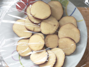 ![]() 3:さつまいもは皮を綺麗に洗い、5~8mm幅に切ります。 |
