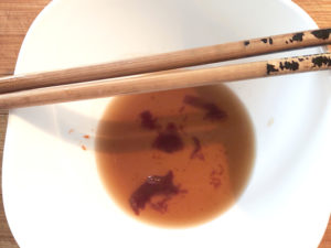 ![]() 6:小さ目の容器に、寿司酢、コチュジャン、めんつゆを混ぜて、タレを作っておきましょう。 |
