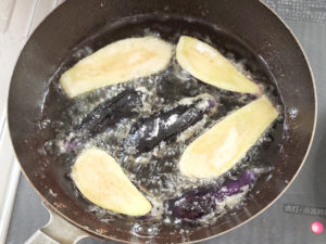 ナスは衣がしっかりと固まるまで、火を通してください。