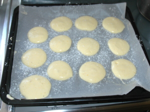 170度のオーブンで12分焼いたら、すぐに外し、ケーキクーラーの上で冷まします。
