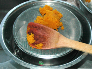 ⑪かぼちゃは、熱いうちに裏ごしします。