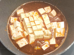 ![]() 7:煮立ったら、豆腐を加えて、更にひと煮立ちさせましょう。 |