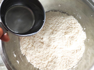 2:ぬるま湯を加えて、手にくっつかなくなるまで捏ねましょう。