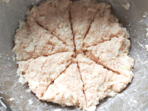 ![]() 3:生地に軽く粘りが出たら、包丁で8等分します。 |