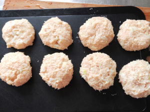 ![]() 4:それぞれ丸めてから平たく成形しましょう。 |