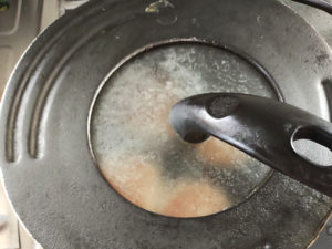 ![]() 6:蓋をして、弱火で4~5分蒸し焼きにしましょう。 |