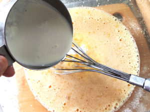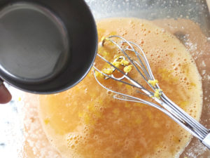 ![]() 16:卵のボールに、レモンの皮、レモン汁を加えてよく混ぜ合わせましょう。 |