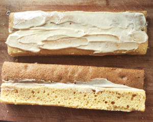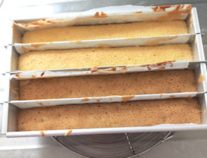 ![]() 10:ケーキ型の片側2本にバニラ生地、もう片方の2本にコーヒー生地を入れて焼くと、程よい感じに高さが揃います。 11:多少膨らみすぎても、その部分を切り取ればOKですし、平らにならしてから焼けば、ケーキ型のお陰でほとんど調整が必要ありません。 12:焼いたら割と膨らんだのにはびっくりです。 |