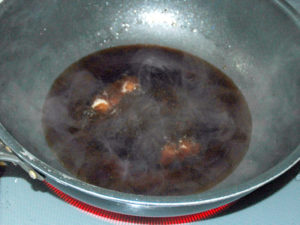 ![]() 3:フライパンの油を捨て綺麗に拭きとってから、酒、砂糖、醤油、酢を入れて沸騰させます。 4:調味料が溶けたらOK。 |