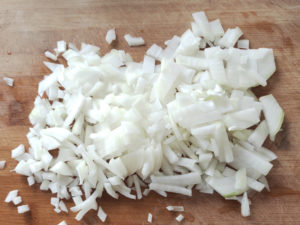 ![]() 1:玉ねぎは皮をむき、粗みじん切りにします。 2:にんじんも皮をむいてみじん切りに、椎茸は軸を取りみじん切りにしましょう。 |