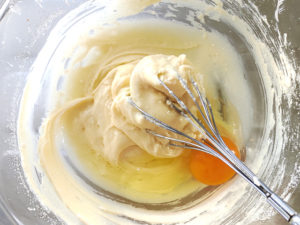 ![]() 3:ボールに卵を1個ずつ割り入れ、その都度よく混ぜましょう。 |