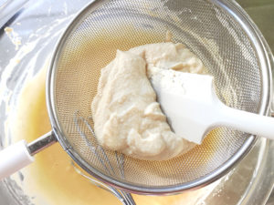 ![]() 4:砕いておいた豆腐を裏ごししてボールに入れ、良く混ぜあわせます。 |