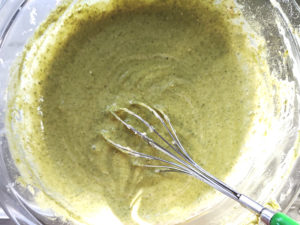 ![]() 5:薄力粉と抹茶を合わせてボールにふるい入れ、泡立て器で粉っぽさがなくなるまで混ぜたらOK。 |