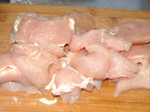 1:鶏胸肉はそぎ切りにします。