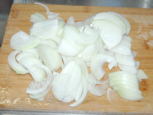 3:玉ねぎは薄切りにします。