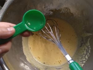 ![]() ④サラダ油を大1ずつ加え、その都度良く混ぜます。 |