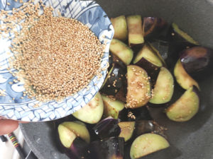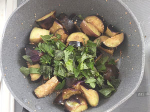 ナスがくたっとするまで、様子を見ながら、油を追加してみてください。