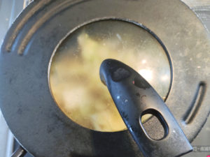 ![]() 7:蓋をして、弱火で3分ほど煮込み、葉がしんなりすればOK。 |