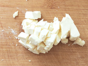 ![]() 1:クリームチーズは溶けやすいように小さく角切りにします。 |
